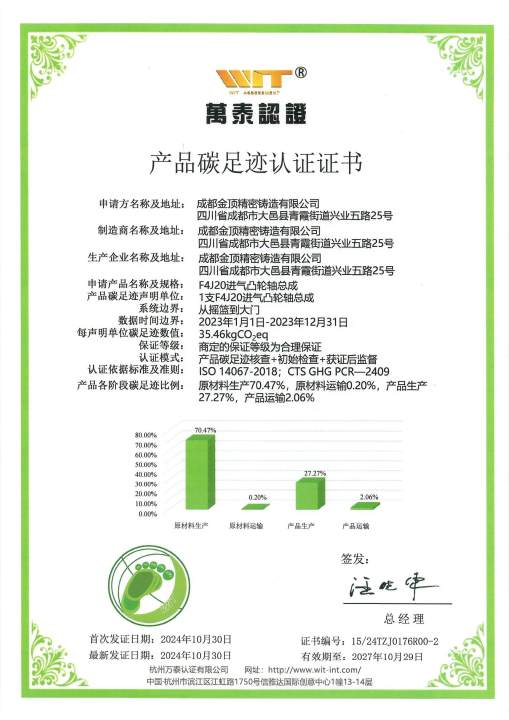 成都金頂精密鑄造有限公司是一家專業的制造型的企業。公司位于成都大邑經濟開發區,投資金額1.6億元,占地面積80畝;為SGM、PSA、MAZDA、奇瑞汽車、廣汽集團、吉利汽車、北汽集團等國內主流汽車企業進行配套,并通過客戶全球采購平臺銷往歐洲、北美市場。